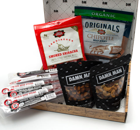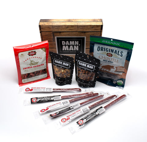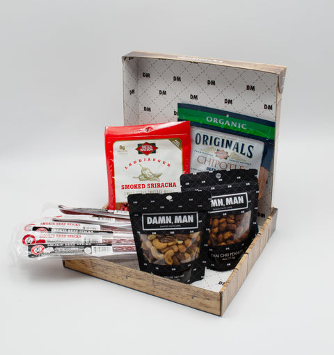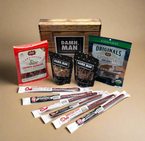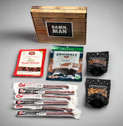 Turn up the heat with the Damn, Man Wise Guy Snack Box — a fire-powered assortment of 10 bold snacks for the guy who likes it spicy. Packed with gourmet beef sticks, chipotle jerky, and roasted nuts with serious kick, this box is a go-to gift for heat seekers and snack connoisseurs alike.