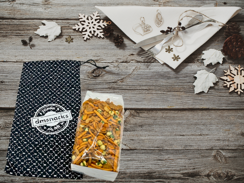 Abre una bebida helada y come un bocadillo con Damn, Man's Taproom Nut Mix. Empacamos una libra de esta sabrosa mezcla y la colocamos en una bolsa de lona para regalar. ¡Los sabores salados y picantes con la textura crujiente hacen que se les haga agua la boca!