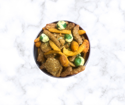 • Los anacardos picantes se recubren con nuestra receta artesanal y luego se tuestan. Usamos una mezcla de cebolla, ajo y jalapeño para crear el sabor picante.